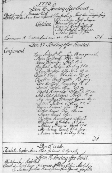 Ane Marie Jonasdatter, Hag, 24 år, møtte ved skolen den 7. september og ble til den 18. september. Leser temmelig i bok. Utenat fra det 1. bud til alterens (sakramente). Forstandsøvelse: intet.