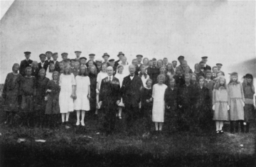 Fygle skole i 1912. I forgrunnen to skoleklasser